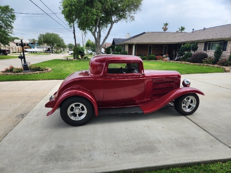 1932 Ford Model B 1932 Ford 3 Window Coupe. The car was built in 2010. It is also titled in Texas as 2010. It has a fiberglass body and fenders {unknown make} The frame is a TCI. It has a stock 350 with a TH350 transmission. It has a Ford 9" rear end {gear ratio unknown}, The car has an aluminum radiator with an electric fan. The car has suicide doors with shaved door handles The car has electric door poppers along with the trunk. It has electronic power steering, power brakes and AC. It has Willwood disc on the front and drum on the rear. It has polished stainless steel exhaust and mufflers. It has Dolphin gauges and polished aluminum and chrome tilt steering column. It has March serpentine belt system with polished AC compressor and alternator. The engine block, underneath, frame and rear end are painted the same as the car. The hood and side panels are steel. The driver side panel is removable for showing engine. It has a tan interior with bucket seats. The car has 8800 miles. It is a very clean car top and bottom. I do not have the build sheet for this car. Looking to sell to purchase another Hot Rod! 47500.004097395734