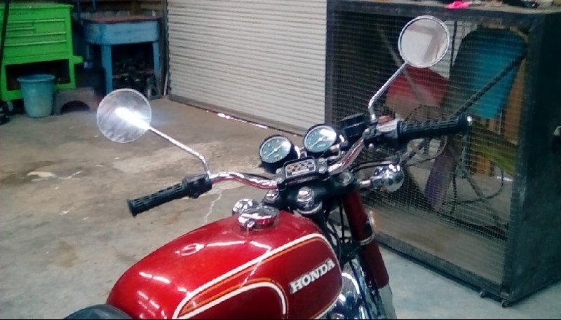 Red with lots Chrome.Runs good 18,000 miles 4 pipes into 1.Helmet goes with the bike.Dual kickstands Everything on Bike works all original. $7,000.00. 409-7823971