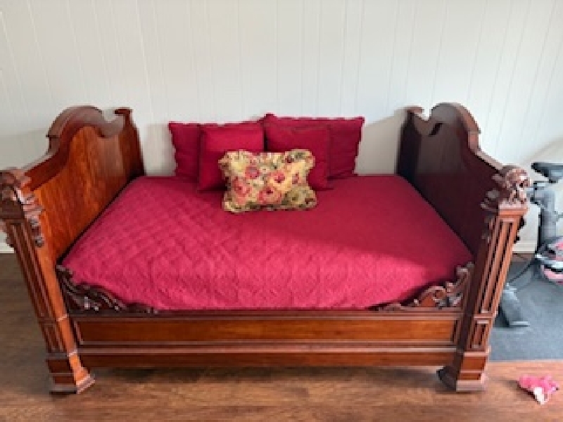19th Century English Day Bed All wood with carvings English Day Bed. Purchased from Snooper's Paradise in Groves in the 1990's. Mattress comes with the bed and has been slept on about 10 times. Beautiful wood and makes a great day bed to relax on. $600 OBO