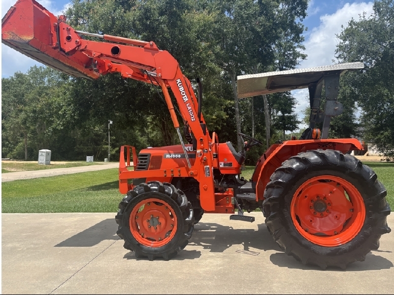54hp Kubota Farm Tractor 2008 54hp Kubota m4900, 4x4, skid steer quick detach front loader/bucket, R1/ag tires, canopy, synchronized shuttle transmission (forward/reverse on the column), rear remote, 800hrs, no emissions, no issues or leaks, large frame machine ready for farm work, $21,750, 409-749-0204. 21750.00