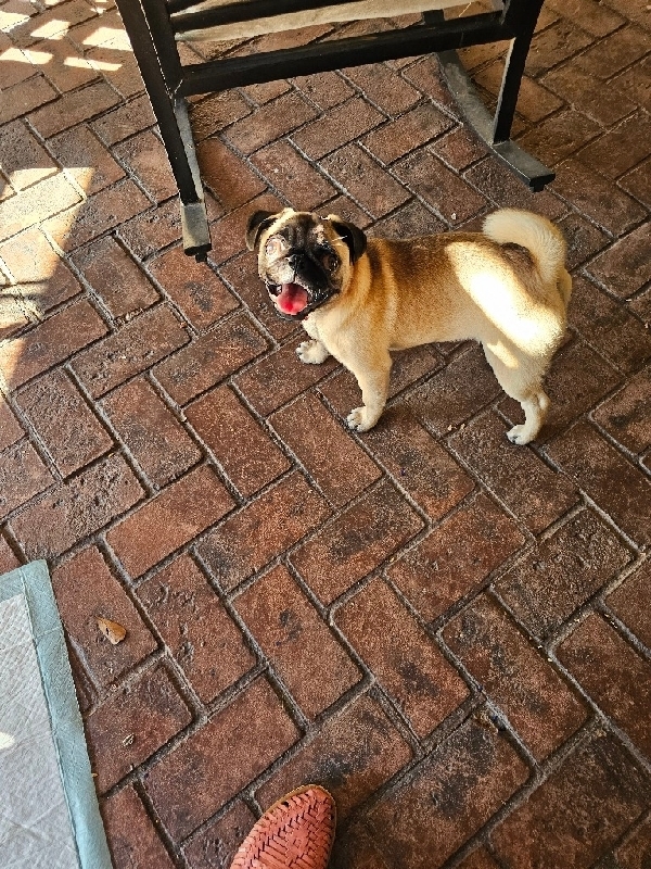 Pure bred female pug. Very sweet and playful. Rehoming fee aplies. Cant keep her anymore due to long work hours. Located in Beaumont TX. Up to date on shots and has chip. 500