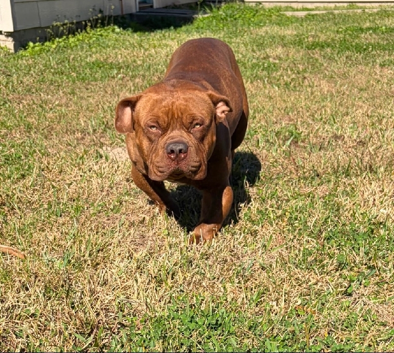 Rehoming our one year-old male, ABKC standard bully. He is chocolate brindle, not neutered. He is great with kids and other dogs. 200