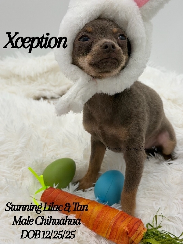 Absolutelt Stunning Male Lilac & Tan Chihuahua Little Xception is just that an exceptional Gorgeous little boy. Xception has been vaccinated and Dewormed and is ready for his forever family. He is such a beauty and his colors and markings are remarkable. Xceptin comes with a very generous puppy pack that includes just about everything you will need for your little man. Super sweet and pre spoiled, all he needs is LOVE. Located in Beaumont Tx if you are seriously interested 409-seven 91-three 944 1850