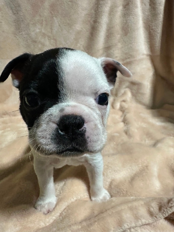 Boston Terrier puppies available. Up to date on immunizations. Dew claws removed and pre spoiled :)