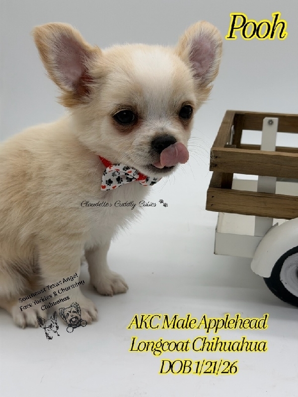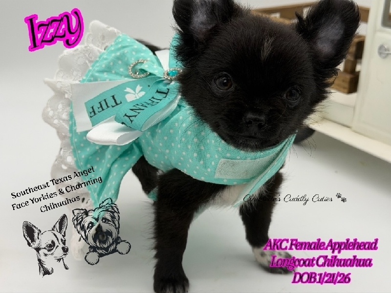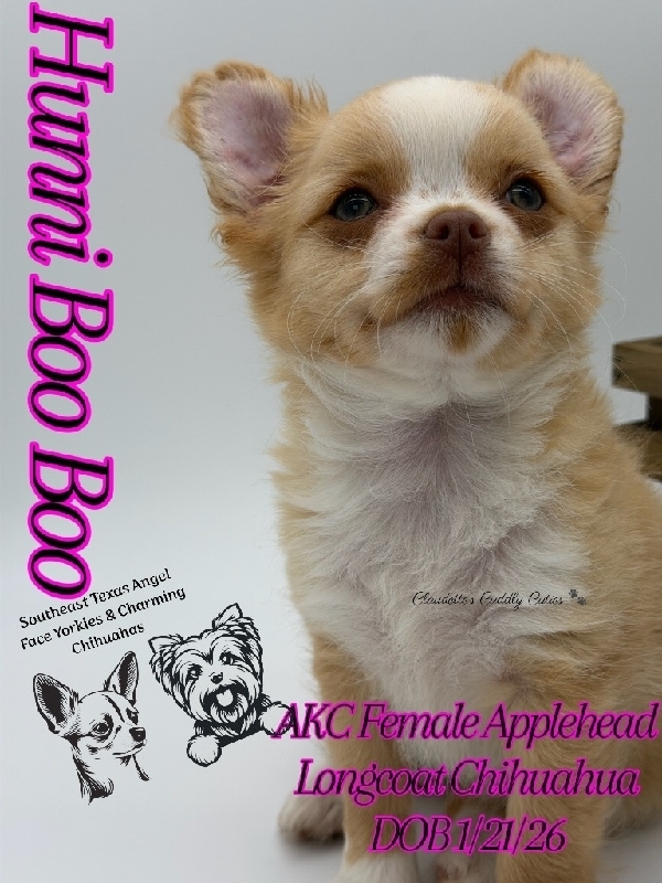 AKC Gorgeous Longcoat Chihuahuas AKC Gorgeous babies. They are absolutely stunning Applehead Longcoats. DOB 01/21/26, these babies are so precious and just perfect in every way. They desire lots of attention and love, raised in my home. The best temperament you would want for your baby. They come with first vaccines, dewormings, Microchipped, 30 days of pet insurance a luxurious new puppy pack and pre loved. 409-791-3944 Beaumont Tx 2000