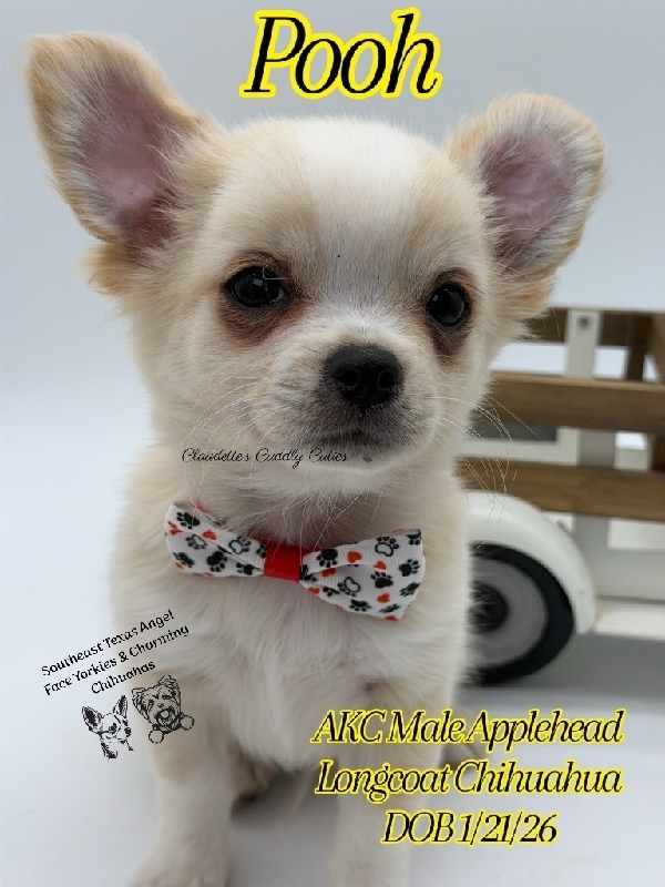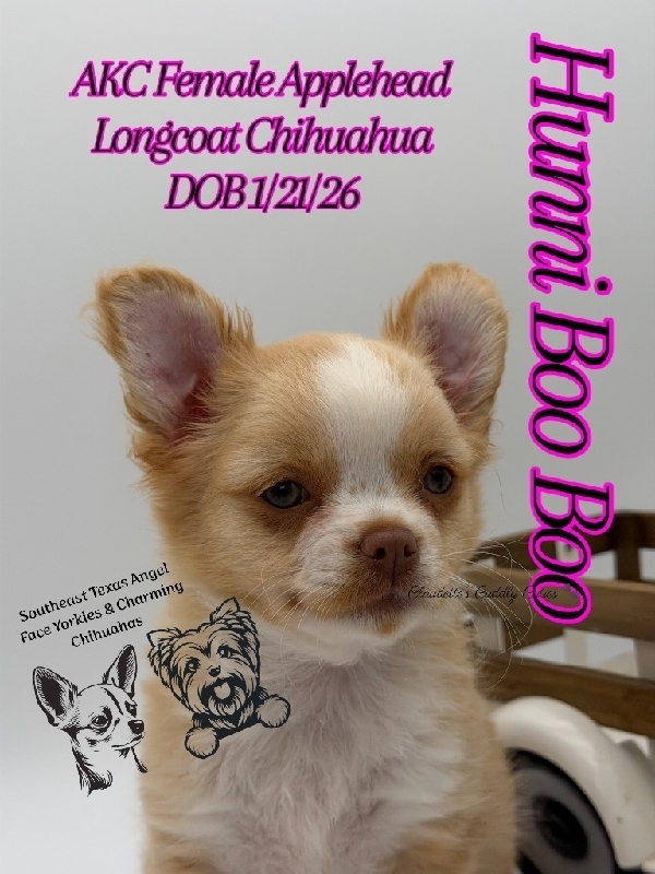 AKC Longcoat Applehead Chihuahuas AKC Gorgeous babies. They are absolutely stunning Applehead Longcoats. DOB 01/21/26, these babies are so precious and just perfect in every way. They desire lots of attention and love, raised in my home. The best temperament you would want for your baby. They come with first vaccines, dewormings, Microchipped, 30 days of pet insurance a luxurious new puppy pack and pre loved. 409-791-3944 Beaumont Tx 2000