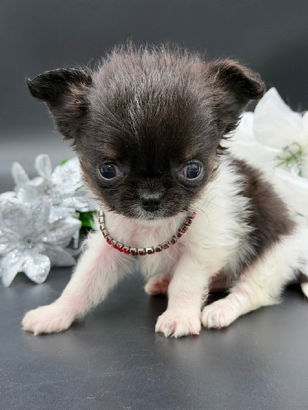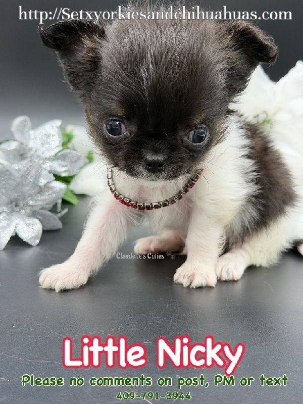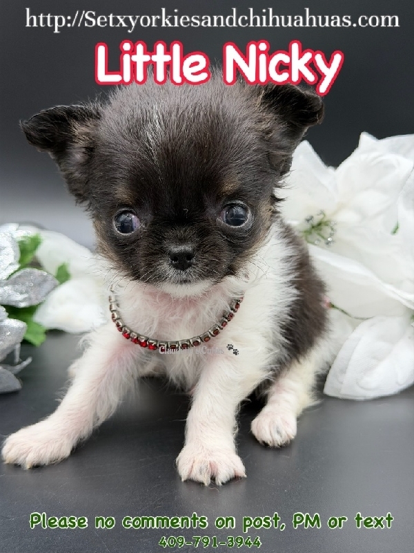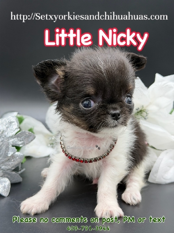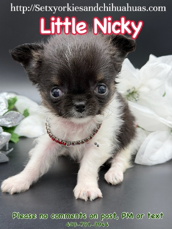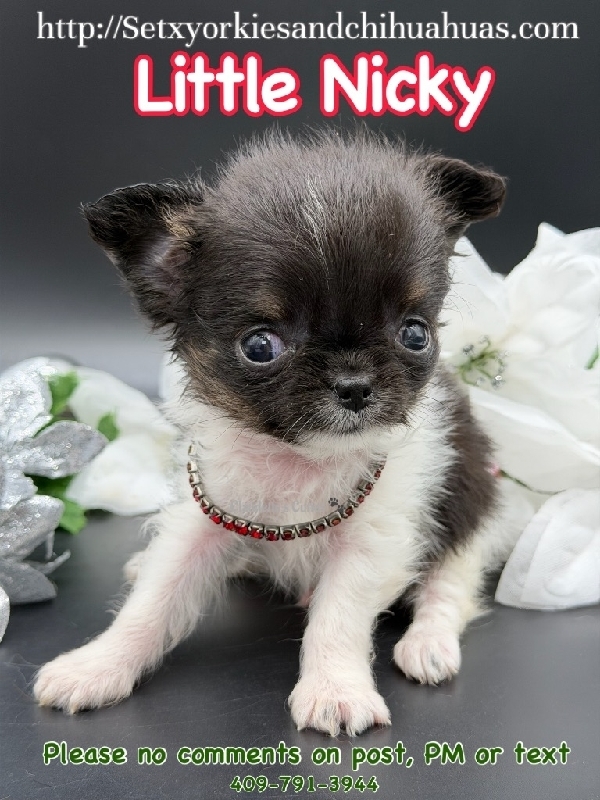 AKC Micro Applehead Longcoat Male Chihuahua AKC Registered Applehead Chihuahua, perfect dome head. This Beautiful little boy will come with 1st vaccination, deworming, Microchipped, pre loved and wee pad trained. Little Rudy is ready to become a member of your family. Located in Beaumont Tx 409-791-3944 RUDY is charting over 2 pounds. 2950
