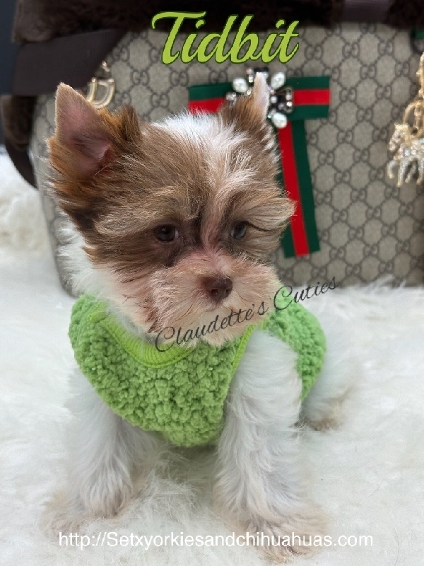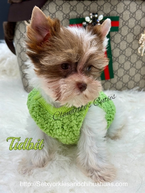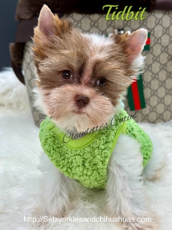 AKC Micro Male Chocolate Parti Yorkies These tiny boys are individually uniquely colored Stunning male Yorkies. They are AKC Registered, will come with first vaccination, deworming, tail docked, dewclaws removed and wee pad trained. They are Microchipped and are such loving little boys. This could be your little prince, I am in Beaumont Tx text or call 409-791-3944. They come vet checked and with 1st set of puppy vaccinations! Just stunning ! They are the whole package! Healthy and all puppy shots and so cute & love to cuddle ! Spoiled little baby boys ! New current pics are on the ad just taken today ! Tito and Tidbit will be about 3.12 lbs. Comes with 4- generation pedigree and a very generous puppy package, his food, vet records, shot record, toys and favorite blanket! Located in Beaumont Tx 409-791-3944 2500