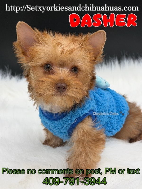 AKC Micro Yorkie Babies These tiny babies are individually uniquely colored Stunning male Yorkies. DOB 9/15 & 9/27. They are AKC Registered, will come with first vaccination, deworming, tail docked, dewclaws removed and wee pad trained. They are Microchipped and are such loving little babies. This could be your little prince or princess, I am in Beau- mont Tx text or call 409-791-3944. They come vet checked and with 1st set of puppy vaccinations! Just stunning! They are the whole package! Healthy and all puppy shots and so cute & love to cuddle ! Spoiled little babies! New current pics are on the ad today! They will be about 4 lbs. Comes with 4- generation pedigree and a very generous puppy package, food, vet records, shot record, toys and favorite blanket! $2500