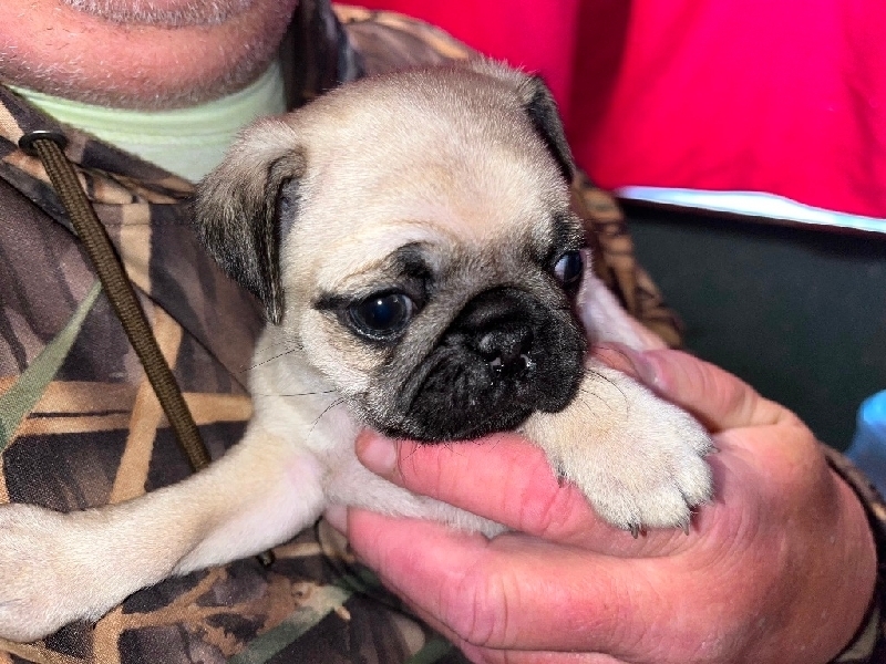 AKC Pug Puppys 6 wks old I have 2 female AKC reg. Pug puppies that need a forever home. The puppies have had their first shots and been dewormed . They are pad trained. And have been socialized with other animals and children. An Adoption fee does apply 350.