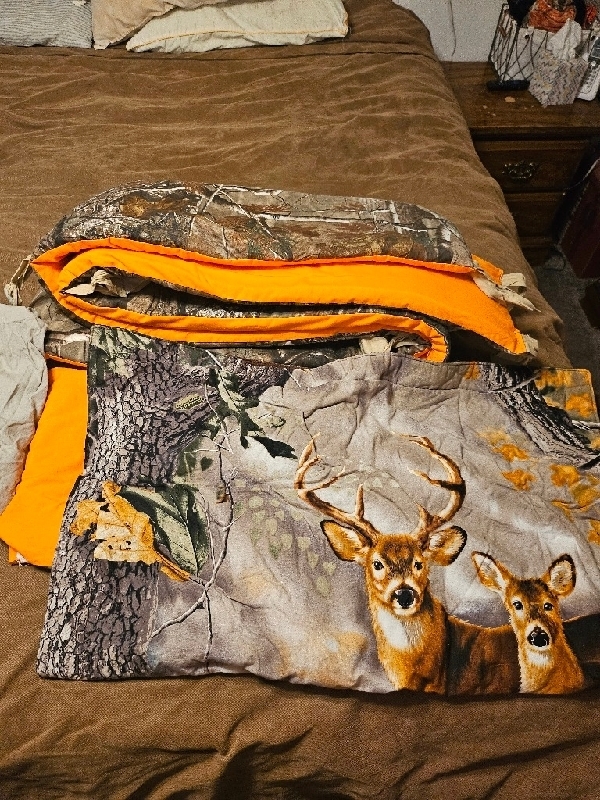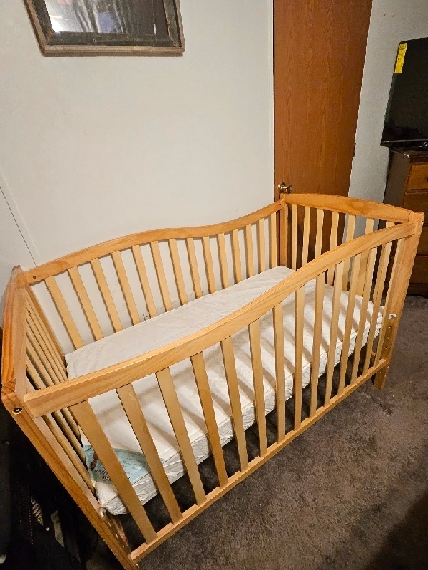 Baby Crib Baby crib with mattress. Also have bumper pads, sirkt, sheet, and blanket camo and orange. 75 for all. Located in Milam. Txt/call 9three6-two8eight-6nine8two 75