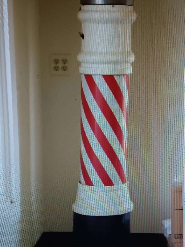 Barber Pole Vintage Barber Pole Globe is reproduction of a "Crown Oil" Gas Pump glass top. Spinning Barber Pole is a "Marvy" Barber Pole from 1966 - 1967 Bottom section is a " Kich & Sons" Barber Pole from 1950' Price : $6,500. Cash & Carry Local Pickup in Galveston, Texas Galveston/Houston 6,500