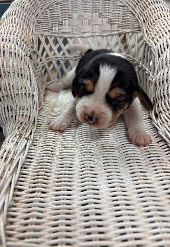 Beagle Puppies AKC Two Traditional tricolor males are pictured on the brown bench and blue bench. Two lemon and white females are pictured on the pink and purple backgrounds. One traditional tricolor female is pictured on the white chair. They will be ready on 11-18-25. You can hold one with a $200 deposit. You can request pictures of the parents. 800
