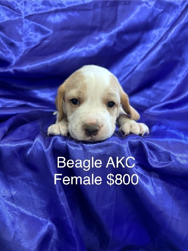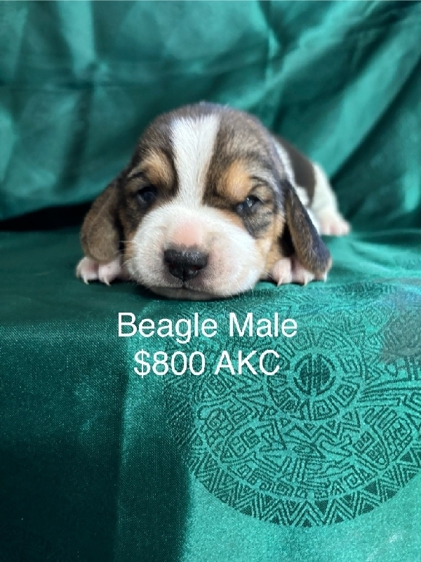Beagle Puppies AKC We have male and female puppies. They will have their first shot and be caught up on their vaccinations. They come with their AKC registration paper and shot record. The puppies on the brown, blue, white, purple and pink backgrounds are ready on 11-18-25. The puppies on the yellow, green and silver backgrounds will be ready on 11-30-25. The puppies on the red, maroon and orange backgrounds will be ready on 12-5-25. You can hold a puppy with a $200 deposit. Thanks for your interest! 800