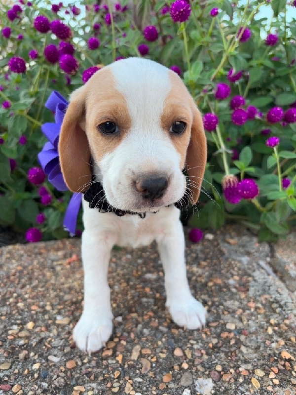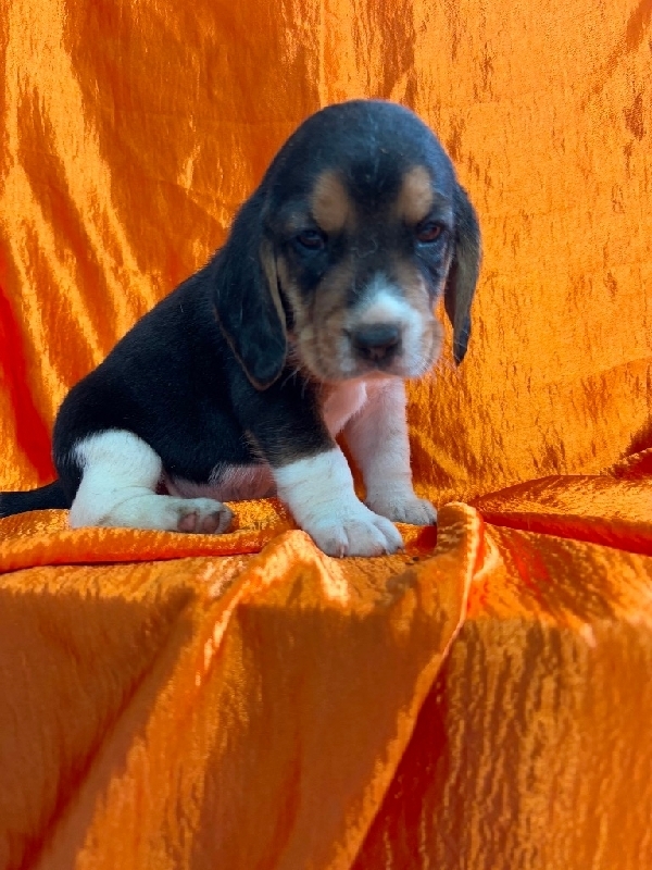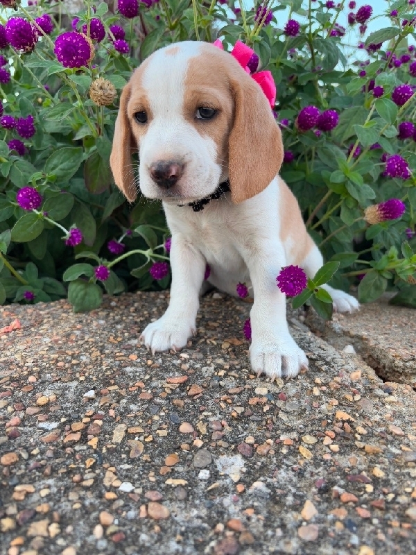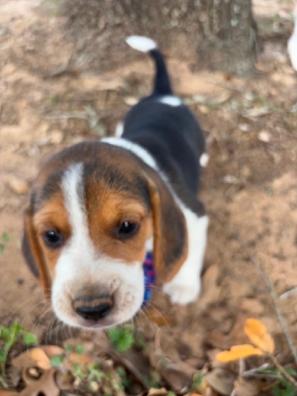 Beagle puppies AKC 4 puppies are ready to go - the 2 lemon and white females, a tricolor female and tricolor male. They are current on vaccines. 2 tricolor males are ready on 11-30-25. 3 puppies are ready 12-3-25. They are pictured on the orange, turquoise and red backgrounds. You can request pictures of the parents. 800