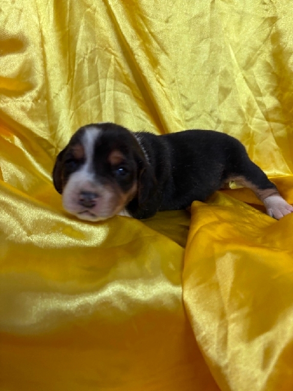 Beagle Puppies AKC 5 females, 1 male $800 $200 deposit will hold a puppy Ready on 2-27-26 Request pictures of parents The females are pictured on the white, yellow, pink, red and purple backgrounds. The male is pictured on the left side on the brown bench. 800