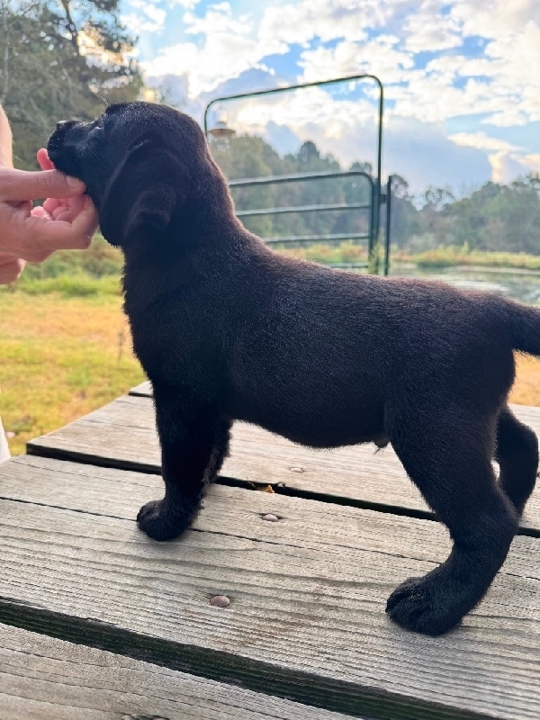 Black Male English Labrador Retriever This lil man is going to be one handsome adult. Pup is very enthusiastic, but can remain docile. Pup will be easily trainable. His sire, Max produces pups that are excellent dual purpose labradors. This boy has amazing pedigree. Check him out at crossgfarms.com We will be traveling to the Beaumont area tomorrow and will be happy to bring him along. 1000
