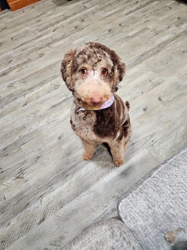 Chocolate merle poodle (female) I have a chocolate merle poodle (female) I am needing to rehome. She has a lot of energy so she needs someone who can spend time with her. Since my husband's medical issues started, we just don't have the time to spend with her that is needed. Please reach out if interested. $100 (negotiable)
