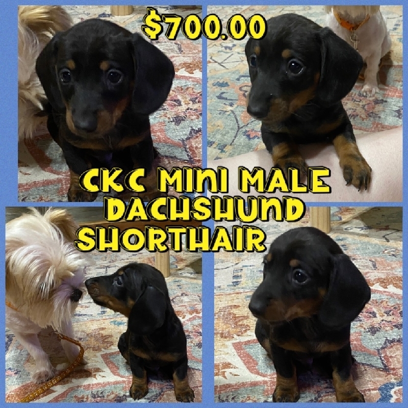I have a CKC Mini Dachshund ready to go. He will leave with 1st shots, wormings, a written health guarantee and a puppy starter kit. $700.00 cash only. Call or text 337-401-7395 700