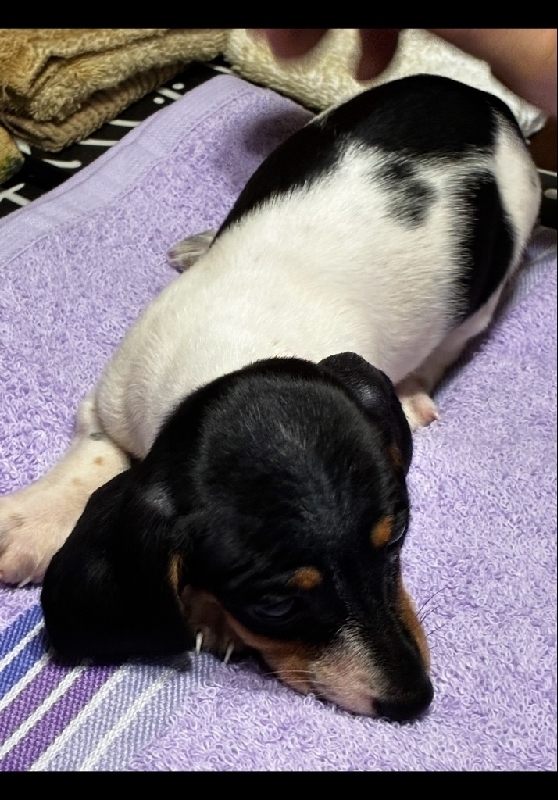 dachshund puppies To adorable mini dachshund puppies! One female, red, black and white piebald and one male black and white piebald. Both born on September 7 and both have had their first shots for more information call or text David at 832-768-6588. $450