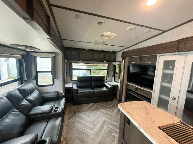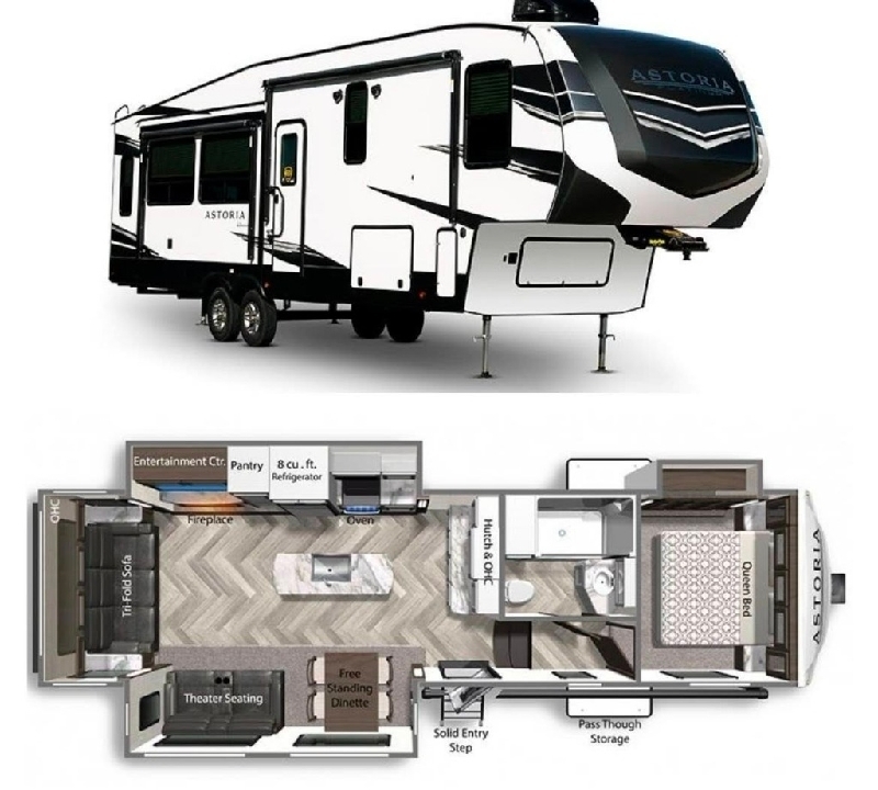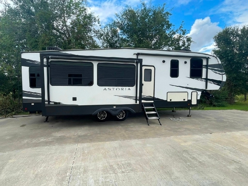 2021 Dutchman Astoria For Sale: 2021 Dutchman Astoria 1500 2993RLF Barely used, garage kept, 3 slides, 2 awnings, fireplace, TV, radio, speakers inside and out, center island, hutch, pantry, queen bed, fold out couch, 2 recliners, mid-size refrigerator, modern farmhouse style, gooseneck hitch, see pictures for specs. $32,900. 4099883703