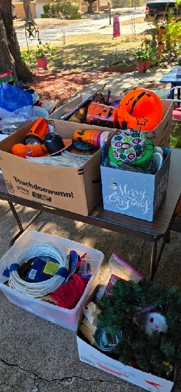 Feb 7, 5935 Navajo Trail in Beaumont, 7 to 12 Lots of clothes, large Mardi Gras beads, baseball shoes, work boots, Christmas, Halloween, lots of coca cola (polar bears, mugs, glasses, tins, cookie jars and toys), 1990s baseball cards, books, etc. Various