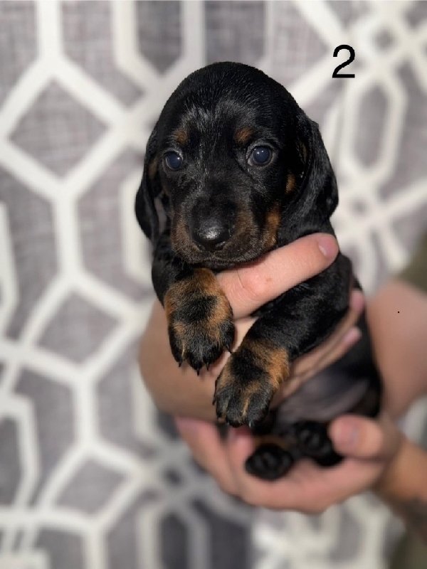 Full blooded standard short hair dachshund Puppy 2 & 3 are male and they are both still available! They are smooth hair standard dachshunds. We are asking $600 for them, they have been dewormed and will have their 1st round of shots before going to their new homes. They will be 8 weeks old November 12th so they will be ready to go to their new homes after then. If you have any questions or want more pictures just let me know! 600