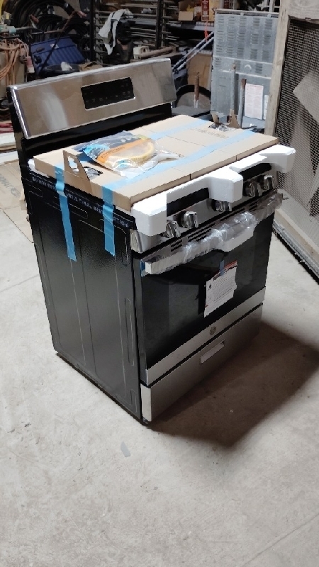 GE 5 burner free standing gas stove in stainless steel finish Brand new GE JGBS66REK7SS From GE: Edge-to-edge cooktop - a large cooking surface gives you extra room for pots and pans of all sizes and lets cookware move easily from burner to burner Extra-large integrated griddle - cook up to six grilled cheeses at once on the extra-large integrated griddle 15,000 BTU Power Boil burner - delivers high heat for fast boiling Center oval burner - large oval fifth burner is ideal for griddle cooking Steam clean - save time and effort by steam-cleaning the oven after cooking; no special water, kits or extra steps required Precise Simmer burner - delicate foods don't burn with low, even heat Heavy duty, dishwasher-safe grates - easily and safely clean grates in the dishwasher 5.0 cu ft oven capacity - cook more dishes at once Sealed cooktop burners - contains spills and make cleaning quick and easy Contact Bruce at 409 658 5123 450