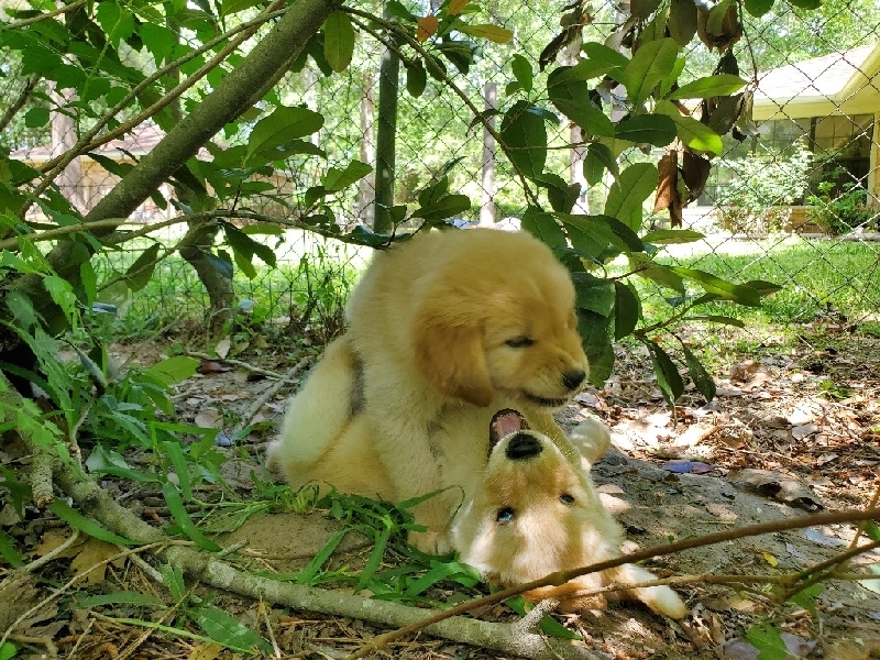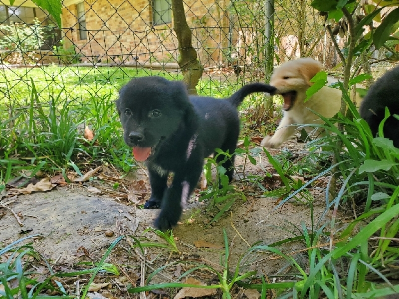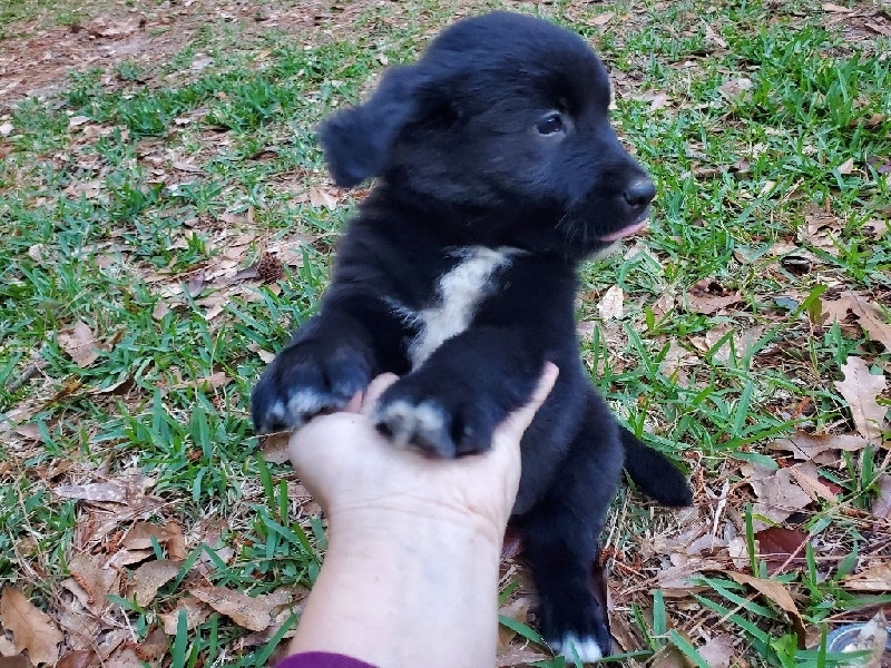 Golden/Collie Puppies 5 Golden Retriever/Border Collie mix puppies, 9 weeks (born Feb 21). 3 black (2 male, 1 female) 2 gold (males) Have their first shots, and dewormed at 4, 6, and 8 weeks. Parents are not registered, and are inside pets. Puppies are around cats, not potty or crate trained, eating puppy chow. The father is a Golden, not registered, weighing around 75lbs; he is your quintessential friendly retriever and not allergic to chicken. The mother is a Border Collie, not registered, weighing around 40lbs; she is a rescue, good guard dog and protective of kids. 100
