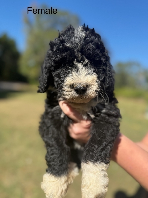 8 weeks on 10-31-25. 1/2 poodle 1/4 Bernese mountain dog 1/4 golden retriever