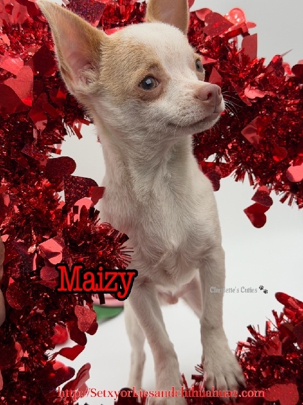 Gorgeous AKC Male Chihuahua Little Maizy is looking for a furever family, he was reserved but she realized that she wouldn't be able to give him the time he deserves. He is a very loving little boy, UTD on vaccination and dewormings, microchipped and wee pad trined. Maizy was born on 8/17/25 and he is ready to Love you for life. Located in Beaumont Tx 409-791-3944 1200