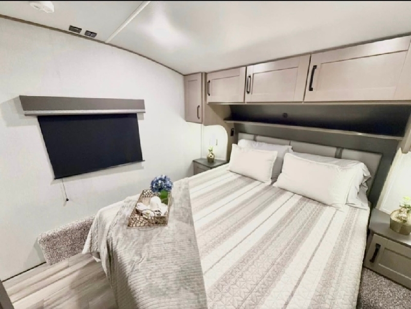 2024 grand design reflection 226RK 1500 2024 Grand Design Reflection 226RK - 1500 series. fifth wheel, featuring a spacious rear kitchen, a large slide-out, This lightweight model is half-ton towable, offering the perfect balance of luxury, comfort, and easy towing Key Features: • Length: approx. 27'6" • Rear kitchen with solid-surface countertops and stainless appliances • Theater seating with heat and massage Booth dinette • Private bedroom with residential queen bed 2 ducted A/C units (15K BTU main + 13.5K BTU bedroom) • 50 AMP electrical service Auto-leveling system • Large pass-through storage 35K BTU furnace Factory-installed solar panel This unit has been gently used and meticulously maintained. Non-smoker, no pets. For more info call or message $32,900…..8329199323
