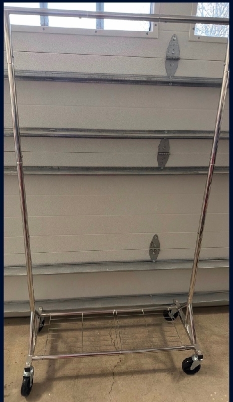 Heavy duty Stainless Steel clothing Racks - Almost New Heavy duty stable wheeled racks. Bought about 2 months ago for a closet renovation and now I don't need them - have 5 - were 44.00 each. Selling for 22 each or 5 for 120. Available for inspection - reasonable offers considered Stored in an insulated climate and temperature controlled garage with an hvac system - All in pristine condition and practically new. 22