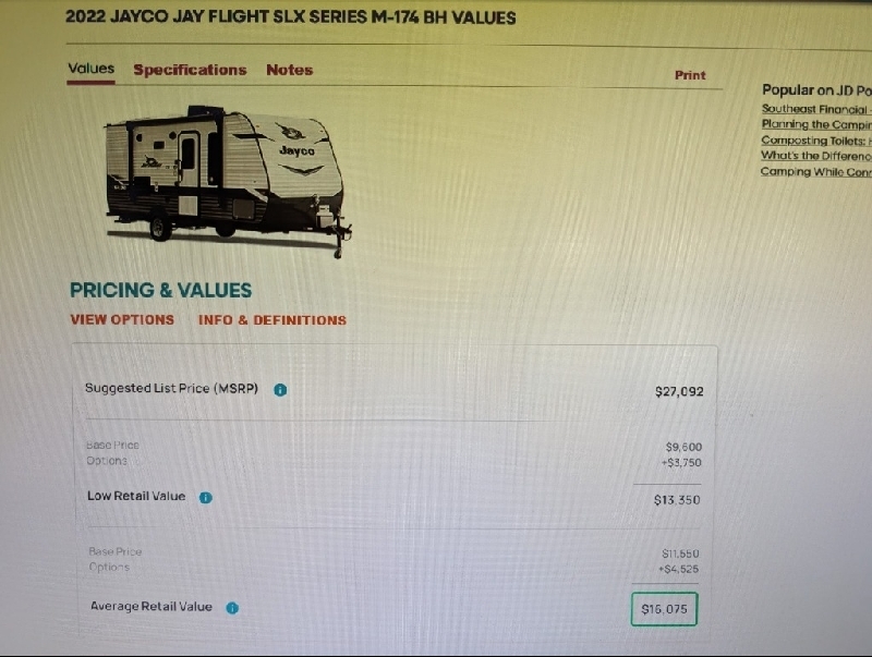 2022 Jayco Jayflight SLX 174BH Purchased in 2023. Was upgraded to fiberglass exterior and larger A.C. Has a queen bed, bunk beds, dining table that folds into a bed and a bathroom with tub/shower and toilet. Power awning with LED lights and a stereo system. Stove burners never used. Used very little still like new. Re-sealed and roof protector sealent put on within 6 months ago. Always kept covered until recently. Only asking payoff, suggested value is much more. Text for info, no scam text will be answered. 409-679-2619 11,900