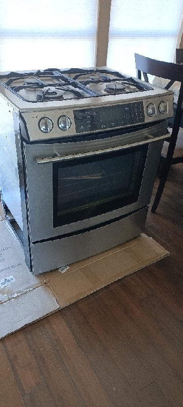 Jenn-Air Dual Fuel Slide in Convection Range Get this in time for Christmas dinner. Used but very clean. Features Drying function, Convection Bake, Convection Roast & Convection Pastry. Sealed burner stove top. 16,000 btu High Performance Burner, Low Turn Down Burner for delicate sauces or melting chocolate. Black & Stainless. Comes with spare oven light bulbs. This range is extremely heavy, about 250lbs. Model #JDS8850BDS. Will take Cash, Paypal or money order, No exceptions. Please TEXT. I can't take calls before 2pm. $550 OBO