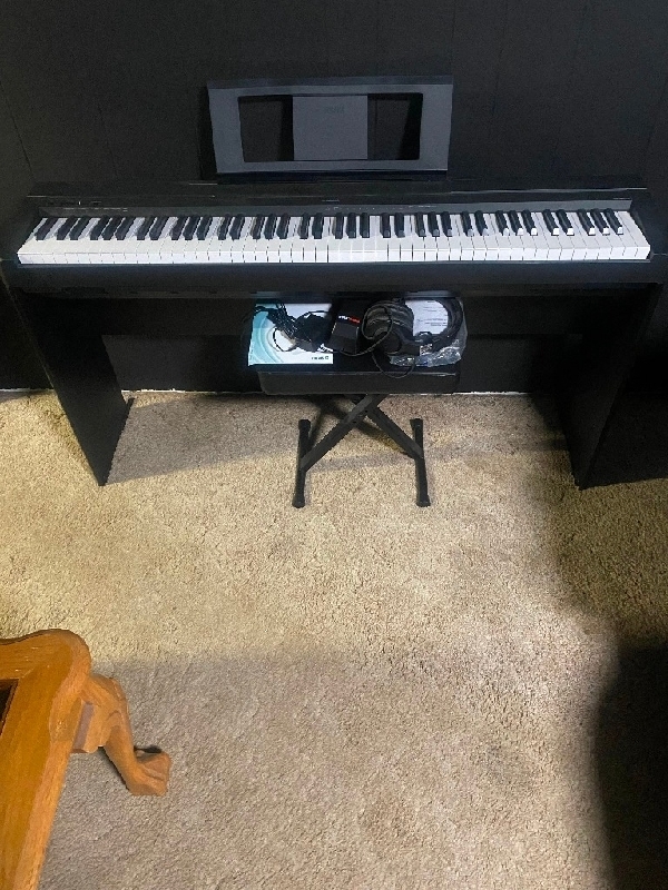 Yamaha P-45 with stand, seat, foot pedal and head phones. Bought a couple of years ago for my daughter and she barely touched it. Everything like new and works perfectly, it cost about $500 for everything asking $200 4094239446 $200.00