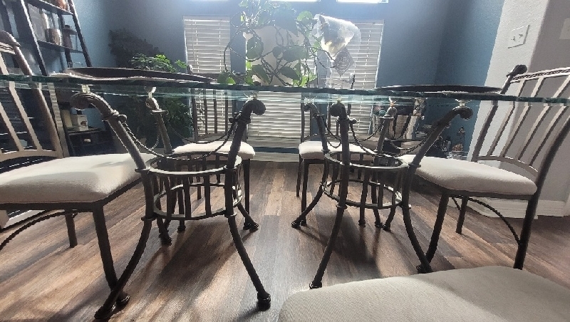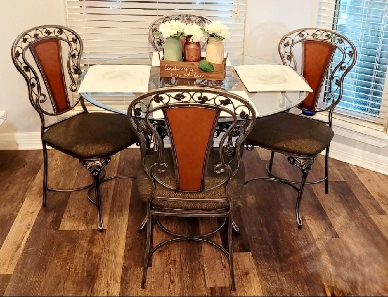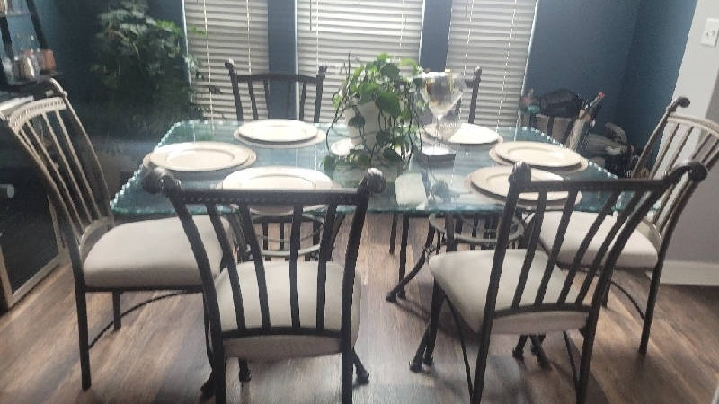 Kitchen Set/Buffet & Dining room Set Good Condition, smoke free home, both are wrought iron, upholstered chairs with class table tops $750
