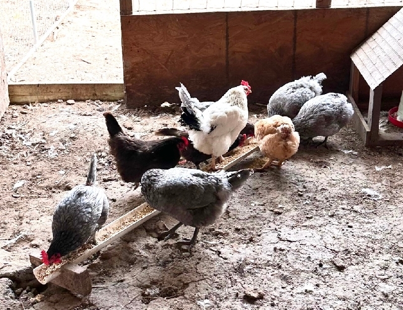 White heritage turkey trio. 2 tons and 1 hen. They are one year old this Easter. Hen is laying.