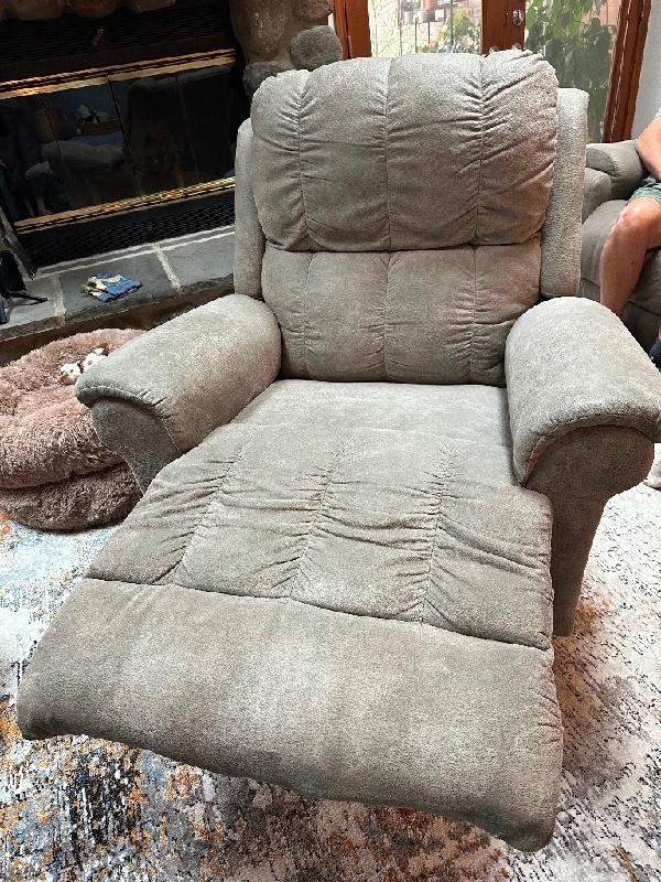 Extra Large Gray Rocking Recliner from LAZBOY purchased 2021. Immaculate condition. No stain, no smells and smoke free home. Paid $1400.00 for it in 2021. We have a cover for it as seen in picture. $175.00 cash