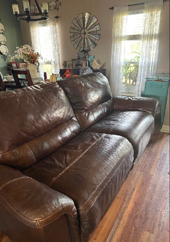 Leather Sofa & Loveseat Leather Sofa & Loveseat Set - Only $100! Used but still in decent shape, this leather sofa and loveseat set is a great deal for anyone looking to furnish a living room on a budget. Both pieces have built-in recliners for extra comfort! Note: •One recliner on the sofa needs a new lever •One recliner on the loveseat also needs a new lever (The mechanisms still work — just needs the levers replaced!) Price: $100 for the set Pickup only Perfect for a garage, basement, or starter setup. Grab this comfy set before it's gone! 100.00