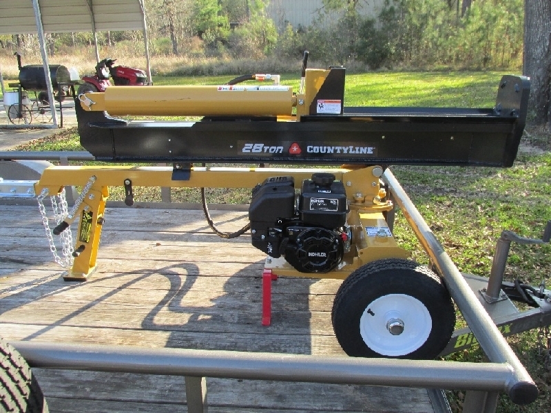 LOG SPLITTER (new) Brand new 28-ton County Line log splitter. Still has factory tags. Never gassed up. Never run/used. Showroom condition. Kept inside with included custom cover. 6.5 HP Kohler engine with warranty. Will run at time of purchase. Sells for $1,623 with tax at Tractor Supply. Filled with hydraulic fluid. $1,250