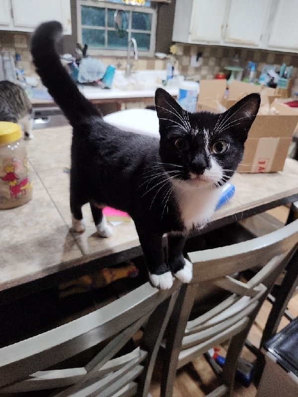 5 month old rescue kitten looking for forever home. Litter trained, good with all age children, other cats and dogs. A little timid around new people but warms up very quickly and is ... Show more »