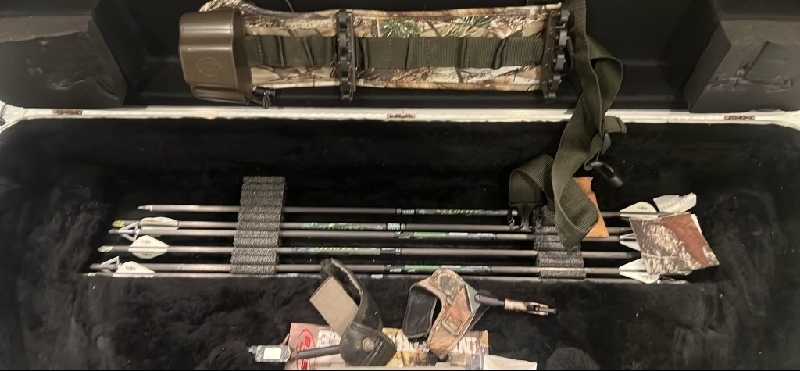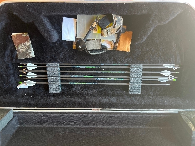 Mathew's halon bow with QAD fall away rest and trophy hunter 3 pin sight, 6 arrows, 2 releases, quiver, and case $550. Firm