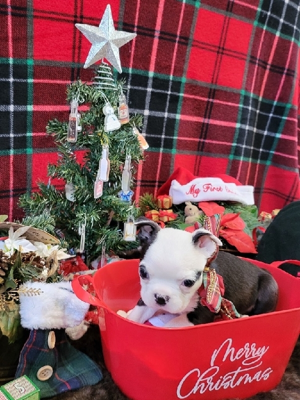 Miniature Boston Terrier Puppies! Perfect for Christmas!! Only three beautiful Female Boston Terrier pups left! Puppies are pure bread. All three are on the smaller side for Bostons and they all have beautiful unique markings! Each puppy has been very well socialized with small children and other animals, including large dogs. They have been extremely spoiled and all are cuddly, affectionate Pups. With happy playful personalities! Both Mom and Dad are onsite. Puppies will come vaccinated and vet checked.