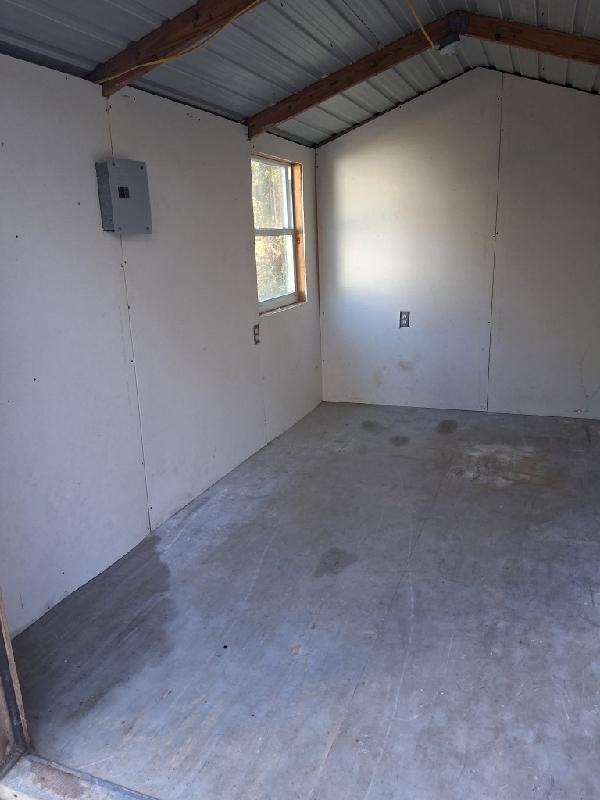 Morgan Shed 12 ft L × 8 ft W Located in Starks,LA.Some of the interior has been drywalled and insulated in . Has a window and no key to the handle of door. There's a electrical box installed ,outlets and light fixture,basically roughed in . Serial no. H164961 Model no. 0812kctjassn 1000