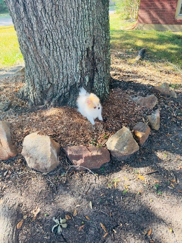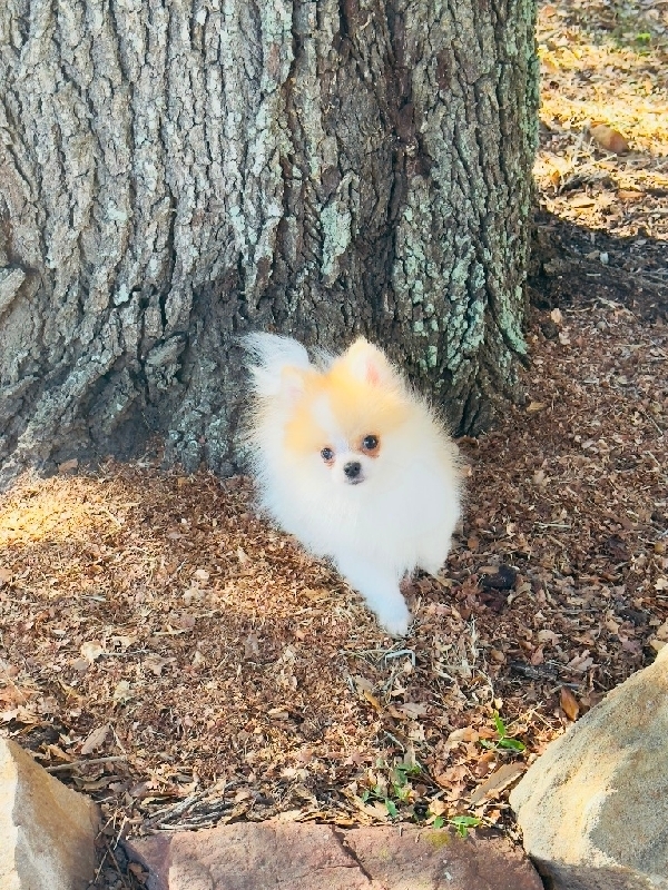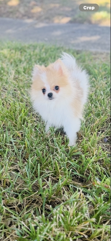 O oh Small teacup female Pomeranian Sable and white parti Sweet and petite. Meet Pumpkin Kisses. Ready now call 281-898-5845. 6 months old and still very tiny. Pet home. Clear Lake. If you're looking for a tiny teacup Pomeranian to carry everywhere here she is!! Call now - FaceTime available. Shots- wormed- comes with food, pads, bowls, toy and genetic guarantee. 1500