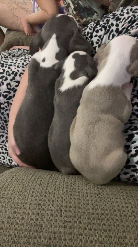 Pitbull puppies. Pitbull puppies! Female born Sept 30th. She's almost 12 weeks old. Potty trained and on hard food. Blue eyes. Has had shots. Kennel trained. 2 males one is fawn & one is blue. Both born Nov 4th. Almost 7 weeks. Got them at 2weeks and bottle fed. Puppy pad training great & kennel training. All three have been wormed. $200/ea………… 409-812-6170 200