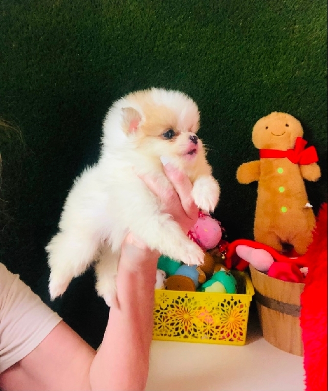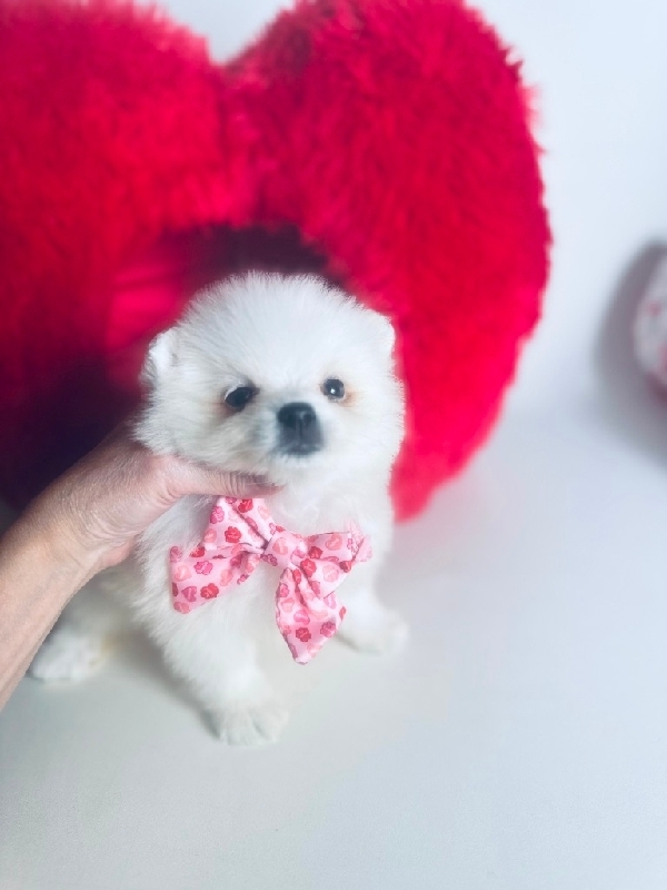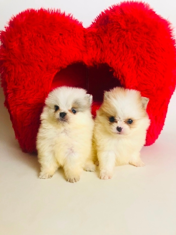 Pomeranian puppies Teddy Bear Poms We currently have six Pomeranian puppies available for new homes. I have two solid white females. I also have 2 males and 2 females In gorgeous colors. Blue merles on white and partis. Call 281-898-5845. $2500-3500.00. Ready for your valentine. Clear Lake area 77062. 2500