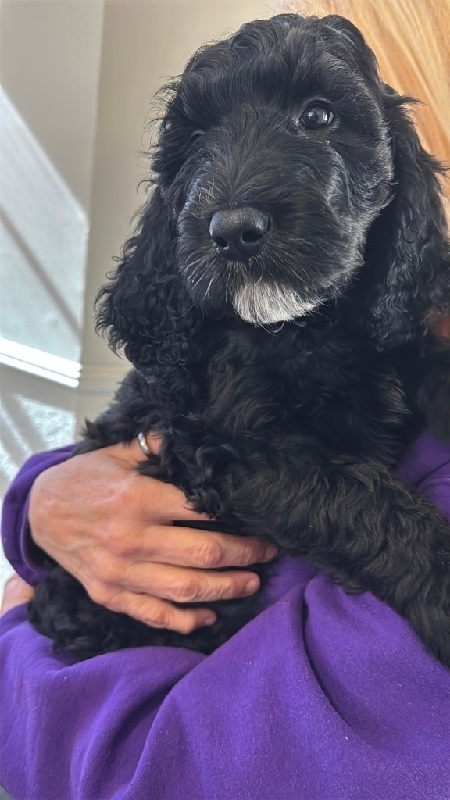 Puppies F1B Labradoodles 8 weeks old, have had shots and ready to go to new homes. 3 girls 1 boy. 2 white girl 1 black girl 1 black boy. Comes with papers, and everything needed to take them home. Can meet with puppy if needed. Call me for more information. 713-829-7161 1000