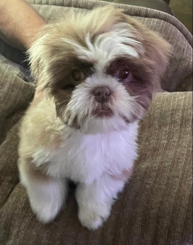 Registered Male Shih Tzu puppy Rehoming a beautiful 4 month old lilac and white male Shih tzu he is potty pad trained crate trained and already sits for his treats he is UTD on all shots they are complete he is a very sweet boy we did his first groom to get rid of some puppy hair located in Cleveland Tx Rehoming for less then paid Rehoming fee $1100.00 I have all my paperwork proof call 832-731-5775 No Scamners not shipping thus little guy 1100.00